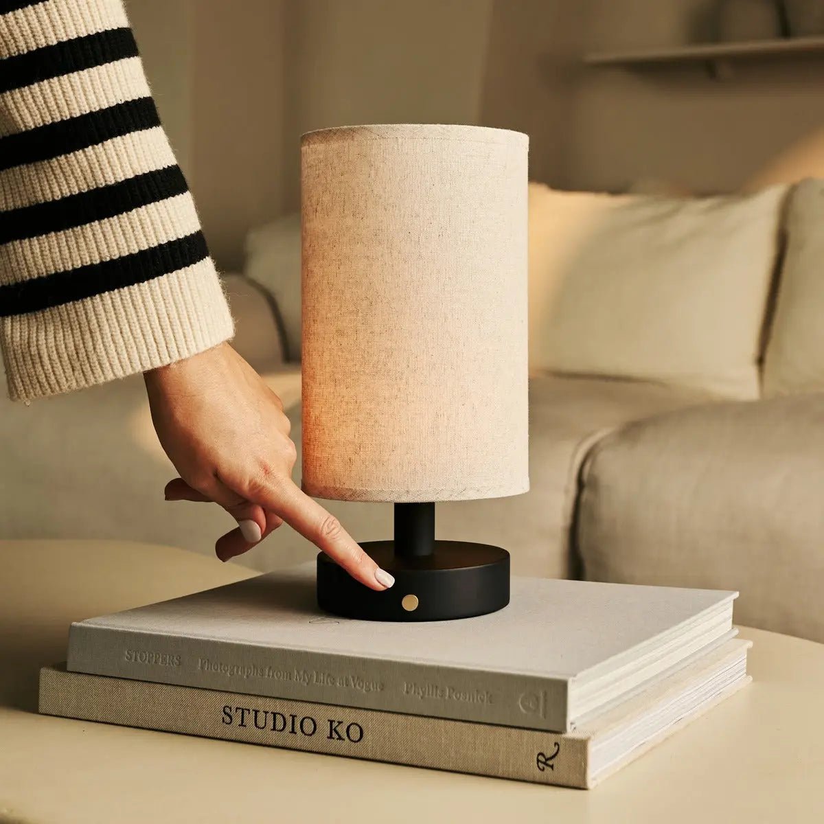 Ben Zwarte Houten Tafellamp – Oplaadbaar, Dimbaar, USB-C Voeding Stijlvol model: De Ben Houten Tafellamp met stoffen lampenkap en houten voet. Met zijn elegante uitstraling en warm licht zorgt deze tafellamp oplaadbaar altijd voor de juiste sfeer in je slaapkamer, woonkamer of op je bureau. Oplaadbaar en draadloos: Dankzij het oplaadbare en draadloze ontwerp kunt u de tafellamp eenvoudig verplaatsen, zonder rekening te houden met stopcontacten. De ingebouwde batterij is snel op te laden via de meegeleverde USB-kabel en zorgt voor maar liefst 100 uur verlichting, zodat je altijd verzekerd bent van voldoende verlichting. Eenvoudig in gebruik: De lamp is eenvoudig te bedienen met slechts één simpele aanraking. Hierdoor zet je de lamp gemakkelijk aan of uit. Je hebt de keuze uit 3 verschillende lichtkleuren (kaarslicht, sfeerlicht en werklicht), waardoor je altijd de juiste sfeer kunt creëren, of je nu aan het relaxen bent, werkt of gewoon de kamer wilt verlichten. Dimbare functie: De lichtintensiteit van de lamp is naar wens aan te passen met de touch-dimknop die zorgt voor de juiste sfeer naar keuze. Milieuvriendelijke keuze: de lamp is gemaakt van rubberhout, een van de meest milieuvriendelijke houtsoorten. Het draagt ​​bij aan een circulaire houtindustrie omdat het pas na de volledige levensduur van de boom wordt toegepast. Het gebruik ervan bevordert duurzaam bosbeheer en helpt afval te verminderen. De lamp heeft een laag energieverbruik.Toepasbaarheid: Dankzij de flexibiliteit past deze lamp zich moeiteloos aan elke situatie aan en creëert de ideale sfeer waar u maar wilt. Specificaties • Afmetingen: 14 cm Ø, 30 cm hoog • Materiaal: Rubberwood, stof • Batterij: 5000 mAh (10 tot 100 uur, afhankelijk van gebruik dimfunctie) • Lichtmodi: 3 (2700K-4000K-6000K) • Classificatie: IP 44: (stof- en spatwaterdicht) • Handgemaakt, antislip, snoerloos en eenvoudig dimbaar • USB-C oplaadbaar, kabel meegeleverd