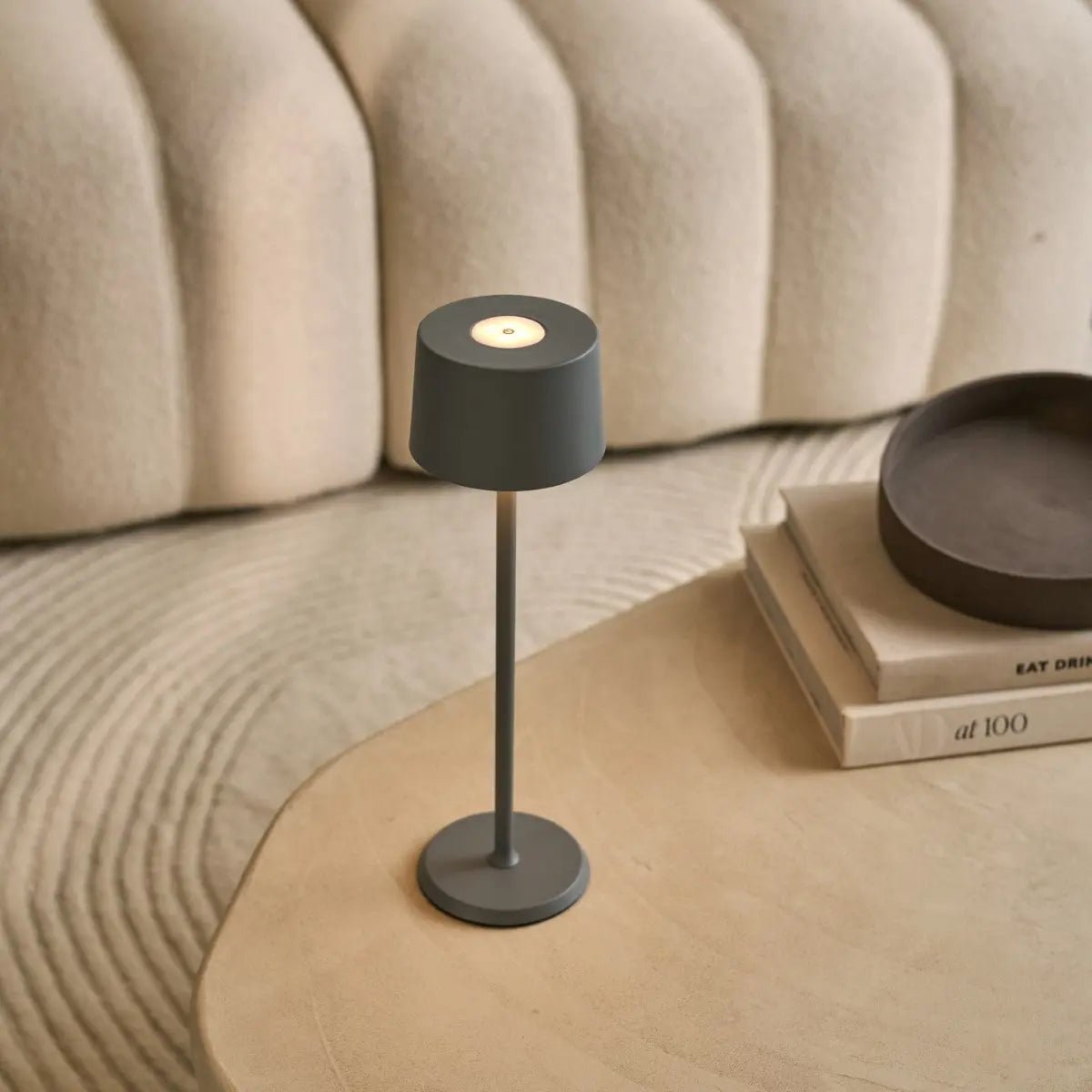 David Trout grijze oplaadbare ijzeren tafellamp – dimbaar en draadloos met 120 uur batterij