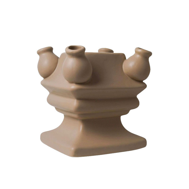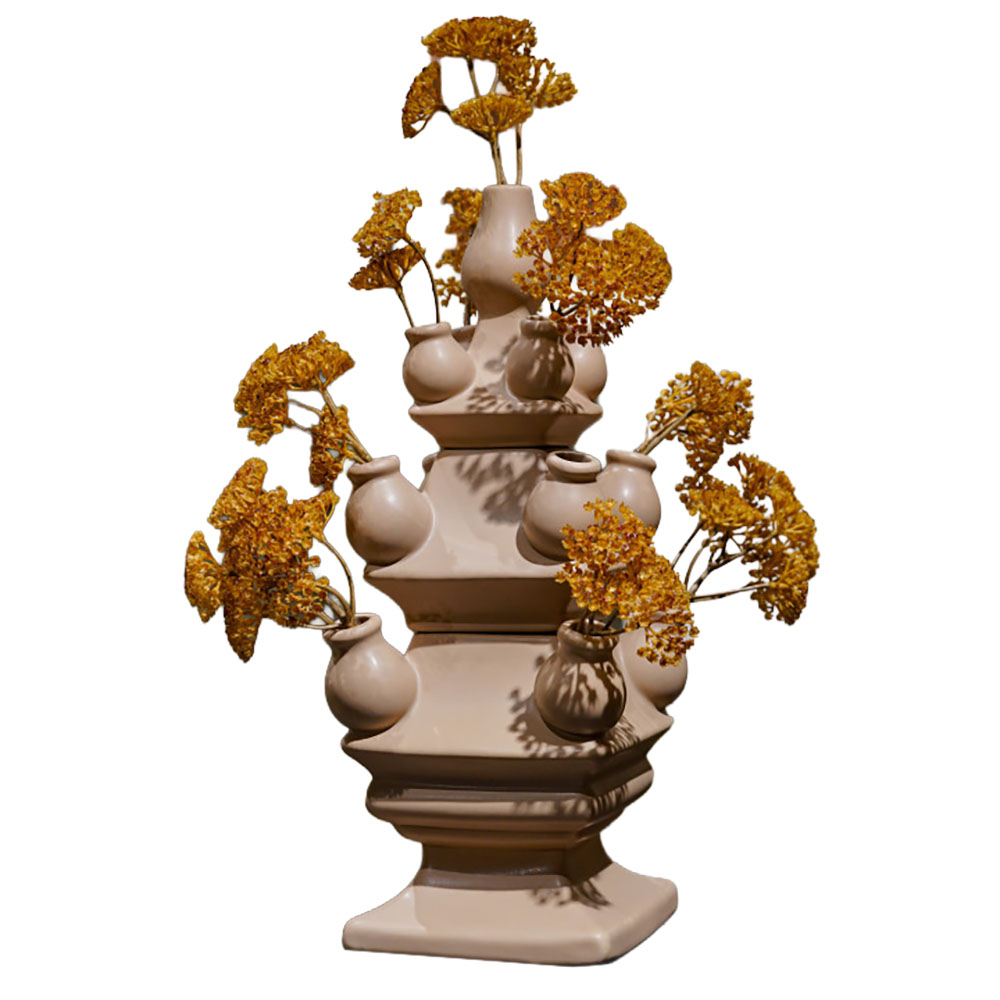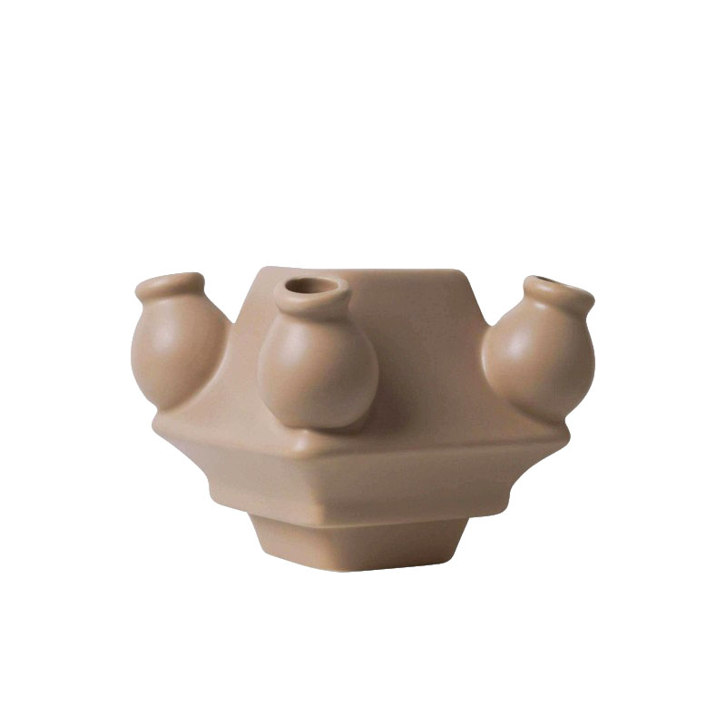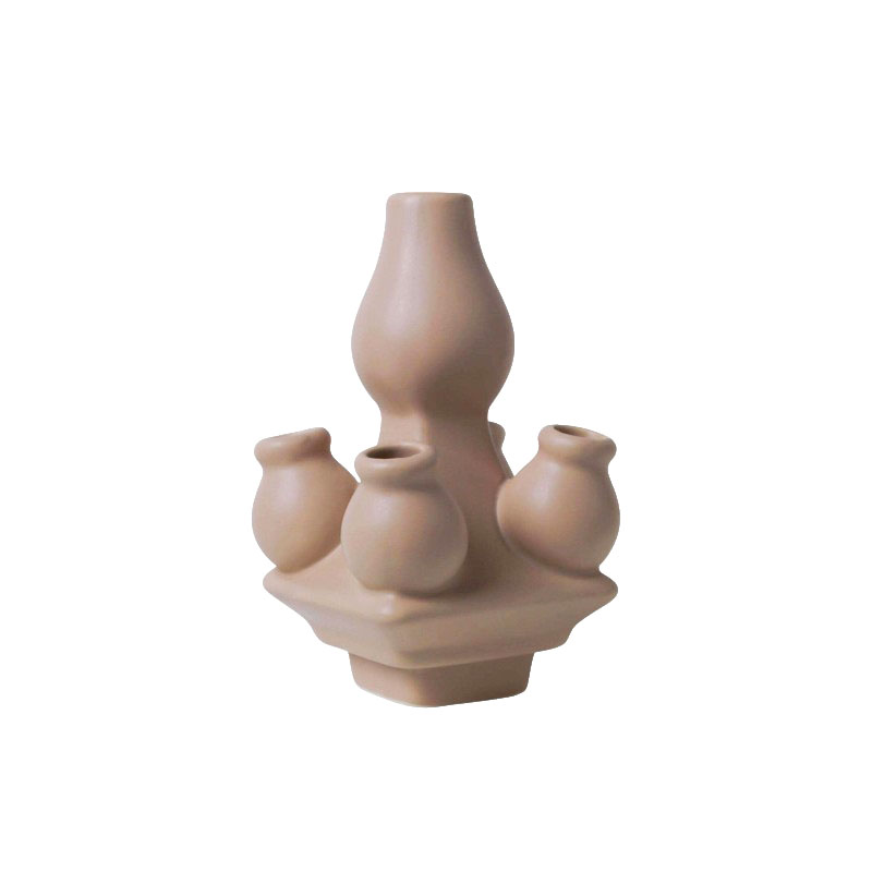 Een driedelige tulpenvaas in een matte beige taupe kleur. Vazen van dit type en formaat (belangrijk) kunnen met andere kleuren gecombineerd worden. Vervang een deel door een vaas in goud, blauw, zilver of de kleur ‘Meisje met de parel’. Deze vazen ​​zijn stapelbaar en elke laag kan apart met water gevuld worden, zodat uw tulpen of andere bloemen altijd de nodige voedingsstoffen krijgen en langer mooi blijven. Laat uw creativiteit de vrije loop en creëer een prachtige vaas.