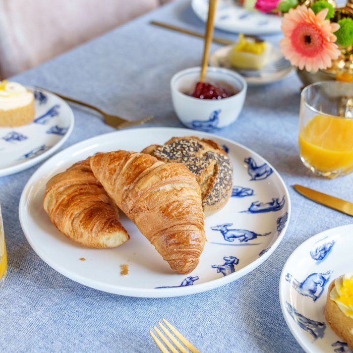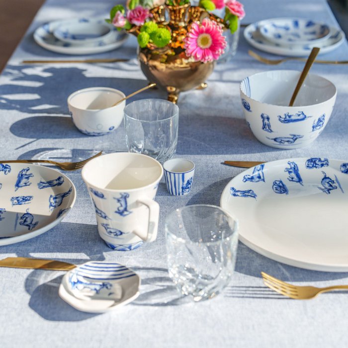 Van dit porseleinen diner bord word je gegarandeerd vrolijk. De speelse teckel rent, springt, tuimelt en rolt over het bord heen. Het diner bord is onderdeel van de Sharing Moments collectie van Janny van der Heijden, die inmiddels uit de lijnen Tulp, Aapjes en nu ook Nhaan bestaat. Nhaan is de harige teckel van koningin van de keuken, Janny van der Heijden. Deze aandoenlijke diva op vier pootjes verovert in een rap tempo de harten van vele Nederlanders.