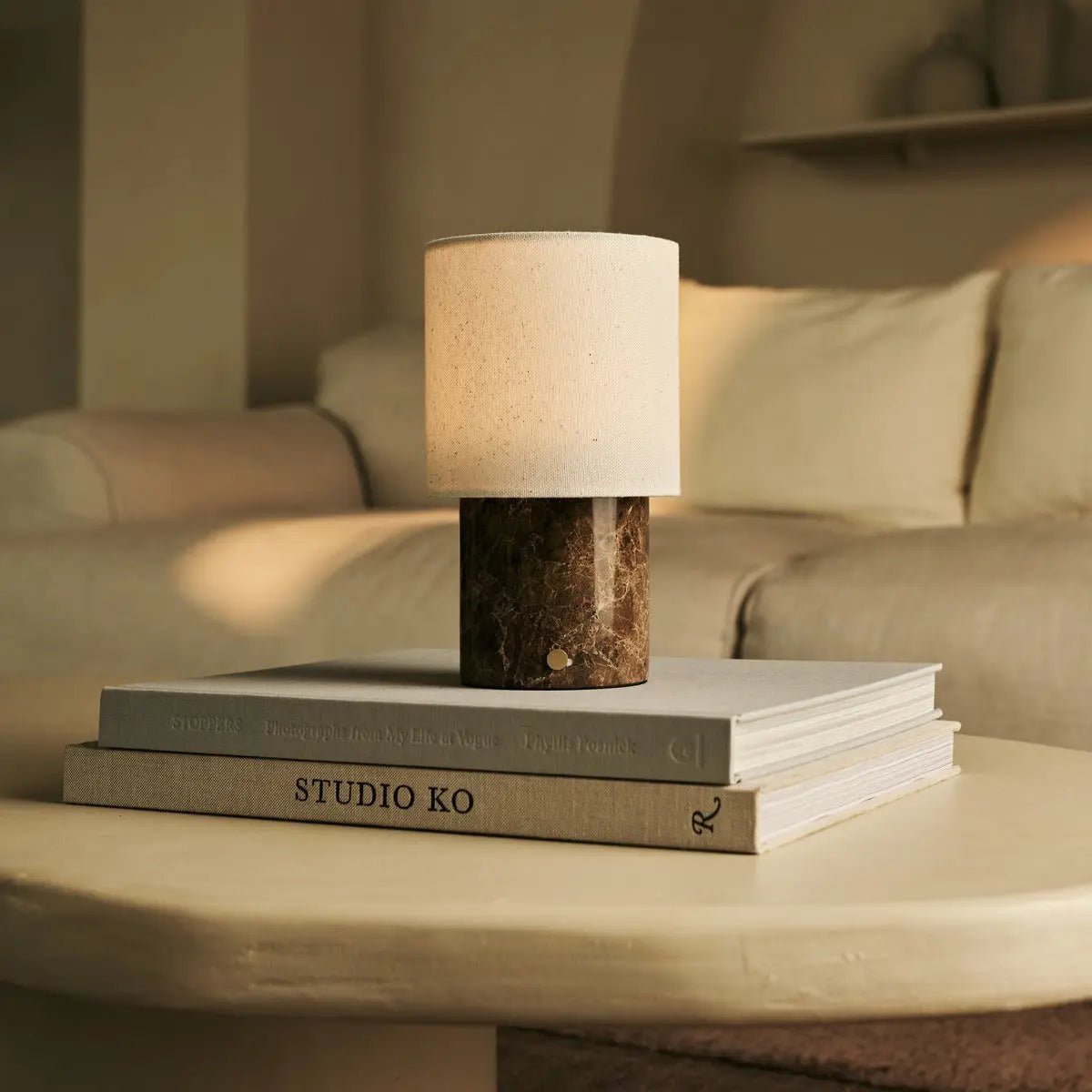 Dou Bruin / Emperador Donker – Marmeren Oplaadbare Tafellamp – Snoerloos, 3 Lichtstanden & Met Linnen Verwisselbare Lampenkap Stijlvol model: De Dou is onderdeel van onze Rijks Collectie. Elke tafellamp is gemaakt van massief marmer, waardoor elk stuk echt uniek is. De natuurlijke nerven en diepe kleurvariaties geven elke lamp een unieke en exclusieve uitstraling. Deze lamp heeft een verwisselbare lampenkap, waardoor je eenvoudig de stijl en sfeer kunt veranderen. Schakel over van glas naar stof, passend bij het seizoen of uw interieur.Modulair ontwerp: Deze lamp beschikt over een verwisselbare lampenkap, waardoor u moeiteloos de stijl en sfeer kunt veranderen. Schakel over van linnen naar glas, passend bij het seizoen of uw interieur. Oplaadbaar en snoerloos: Dankzij het oplaadbare en snoerloze ontwerp kunt u de tafellamp eenvoudig verplaatsen zonder rekening te houden met stopcontacten. De ingebouwde batterij is snel op te laden via de meegeleverde USB-kabel en zorgt voor maar liefst 100 uur verlichting, zodat u altijd verzekerd bent van voldoende verlichting. Eenvoudig in gebruik: De lamp is eenvoudig te bedienen met slechts één simpele aanraking. Hierdoor zet je de lamp gemakkelijk aan of uit. Je hebt de keuze uit 3 verschillende lichtkleuren (kaarslicht, sfeerlicht en werklicht), waardoor je altijd de juiste sfeer kunt creëren, of je nu aan het relaxen bent, werkt of gewoon de kamer wilt verlichten. Dimbare functie: De lichtintensiteit van de lamp is naar wens aan te passen door middel van de touch-dimknop wat zorgt voor de juiste sfeer naar keuze. Milieuvriendelijke keuze: De lamp is gemaakt van marmer. Marmer is een tijdloos en duurzaam natuurmateriaal dat bekend staat om zijn elegante uitstraling en lange levensduur. Het is sterk, slijtvast en behoudt jarenlang zijn schoonheid, waardoor het een verantwoorde keuze is.Toepasbaarheid: De Dou combineert tijdloze elegantie met praktisch gebruiksgemak. De massief marmeren voet en verfijnde linnen kap geven de lamp een luxe en warme uitstraling. Dankzij het volledig draadloze ontwerp plaats je de Dou moeiteloos waar je maar wilt. Specificaties · Afmetingen: 12 cm Ø, 22 cm hoog · Materiaal: Marmer Emperador Dark, linnen · Batterij: 6000 mAh (10 tot 100 uur, afhankelijk van gebruik dimfunctie) · Lichtstanden: 3 (2700K-4000K-6000K) · Classificatie: IP 20: (geschikt voor droge binnenruimtes) · Handgemaakt, antislip, snoerloos & eenvoudig dimbaar · USB-C oplaadbaar, kabel meegeleverd · Modulair ontwerp met vervangbare lampenkap