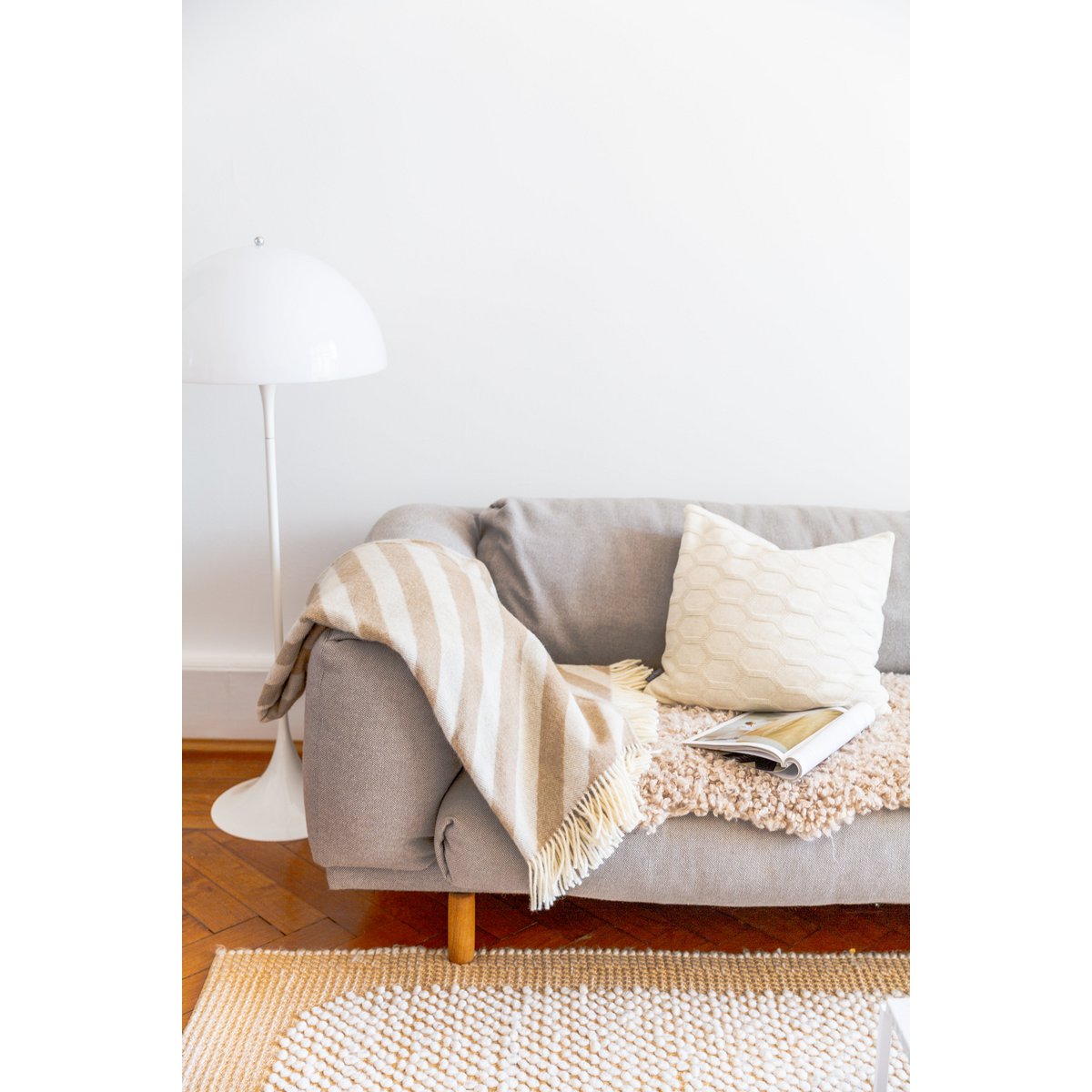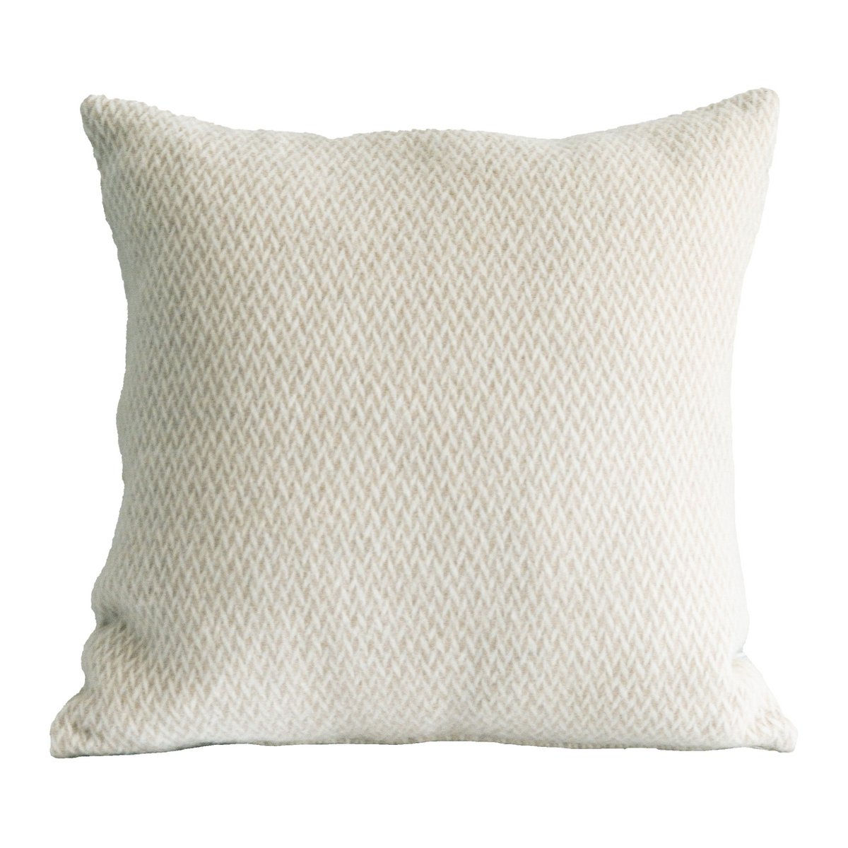 Een lichtgewicht en zacht wollen kussen gemaakt in Litouwen. De geweven structuur geeft een tijdloze en elegante uitstraling. Dit kussen voegt een vleugje “hygge” en gezelligheid toe aan elke bank Materiaal: 100% Noorse wol Gratis verzending bij bestellingen boven de 100 EUR Afmeting: 48×48 cm, wordt geleverd zonder binnenkussens
