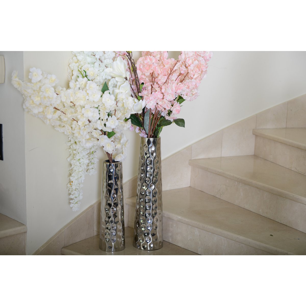 Breng een vleugje moderne verfijning naar uw interieur met onze zilveren Maretele -vaas.
