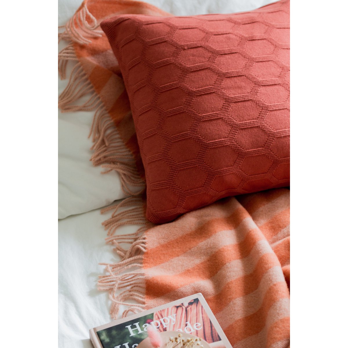 Kussen in gewoon brei met zeshoekige ontwerp in de gebreide structuur. Een funky basissilg dat bijna alles past. Gebreide in een mooie zachte katoenkwaliteit. Gerichte rits aan de onderkant. Wash voorzichtig op 40 graden. Past op standaard 50×50 cm InnerCushions