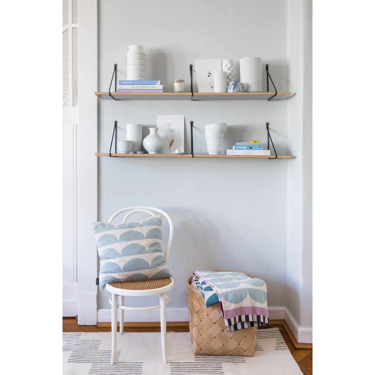 Een jacquard gebreide deken in een superzachte geborstelde eco-tex katoenkwaliteit. Het ontwerp is omkeerbaar, met een verschillende voor- en achterkant. Deze stijlvolle katoenen plaid geeft elke bank of coach een funky twist. Het ontwerp is geïnspireerd op onze Scandinavische designtraditie. afmeting 130×170 cm Fijne was op 30 graden