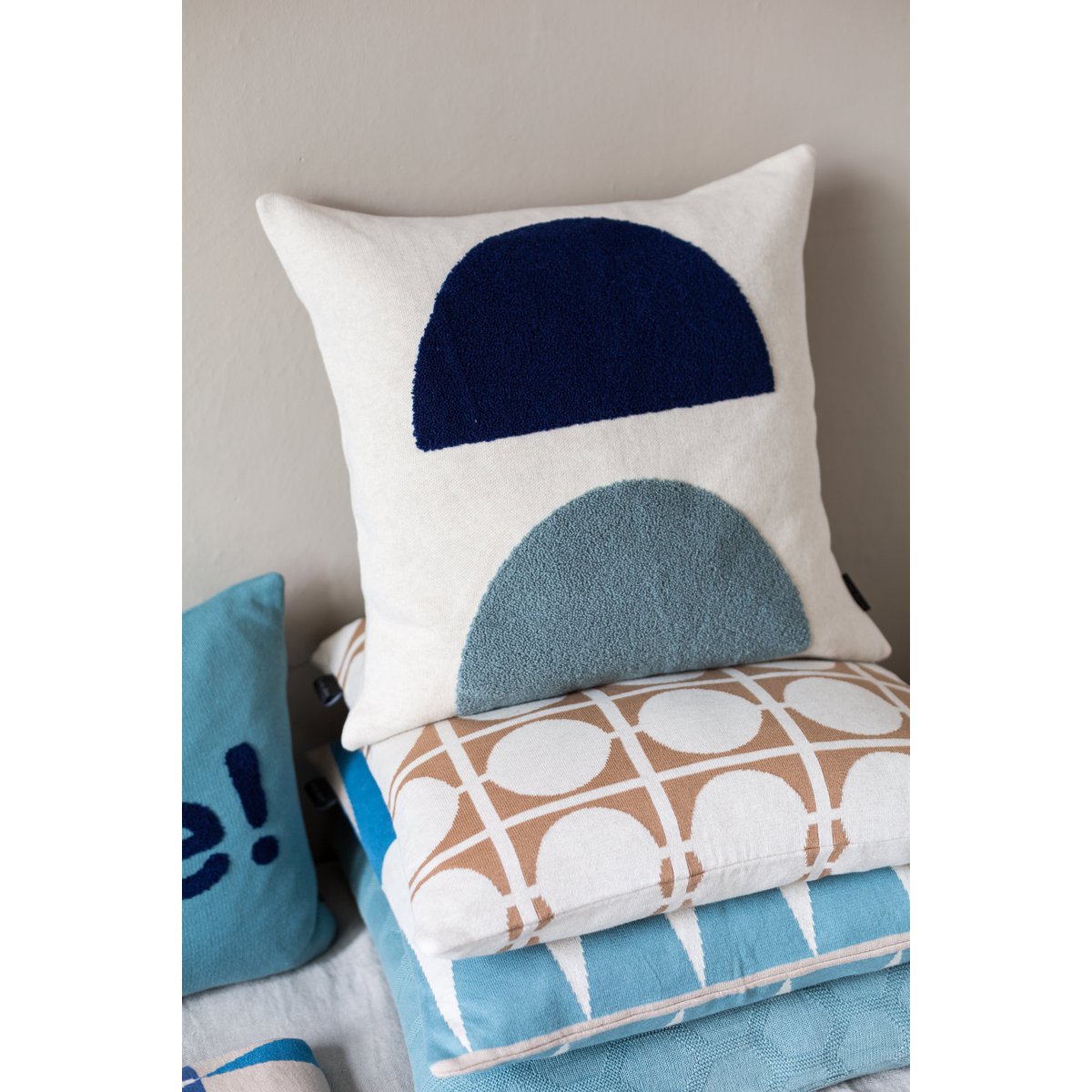 Een leuk kussen gemaakt in punch-naaldtechniek. Heldere kleuren en leuke geometrie voegen een funky sfeer toe aan elke kamer. Het basiskussen is gebreid van 100% katoen en het borduurwerk is gemaakt van polyestergaren. Ritssluiting aan de onderkant