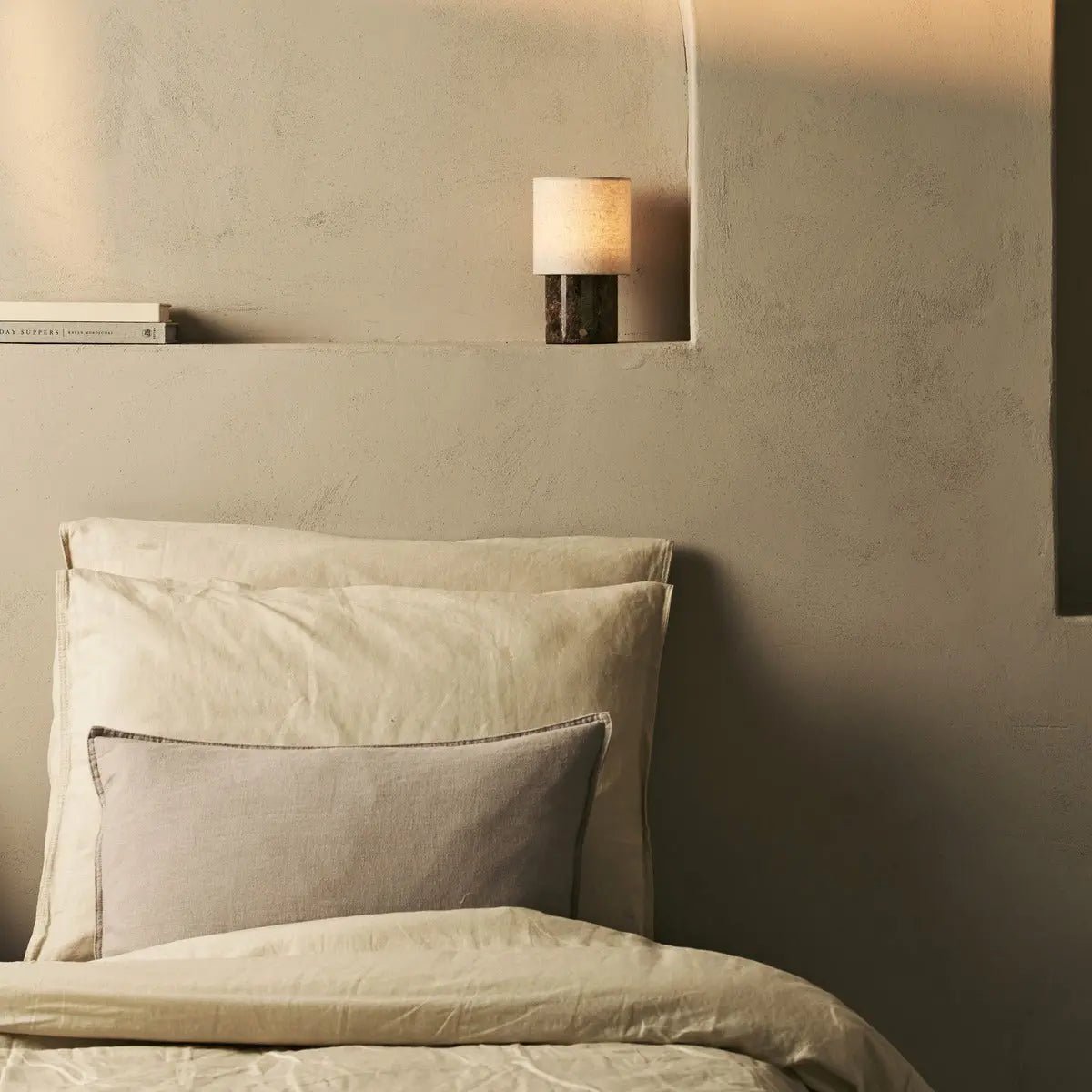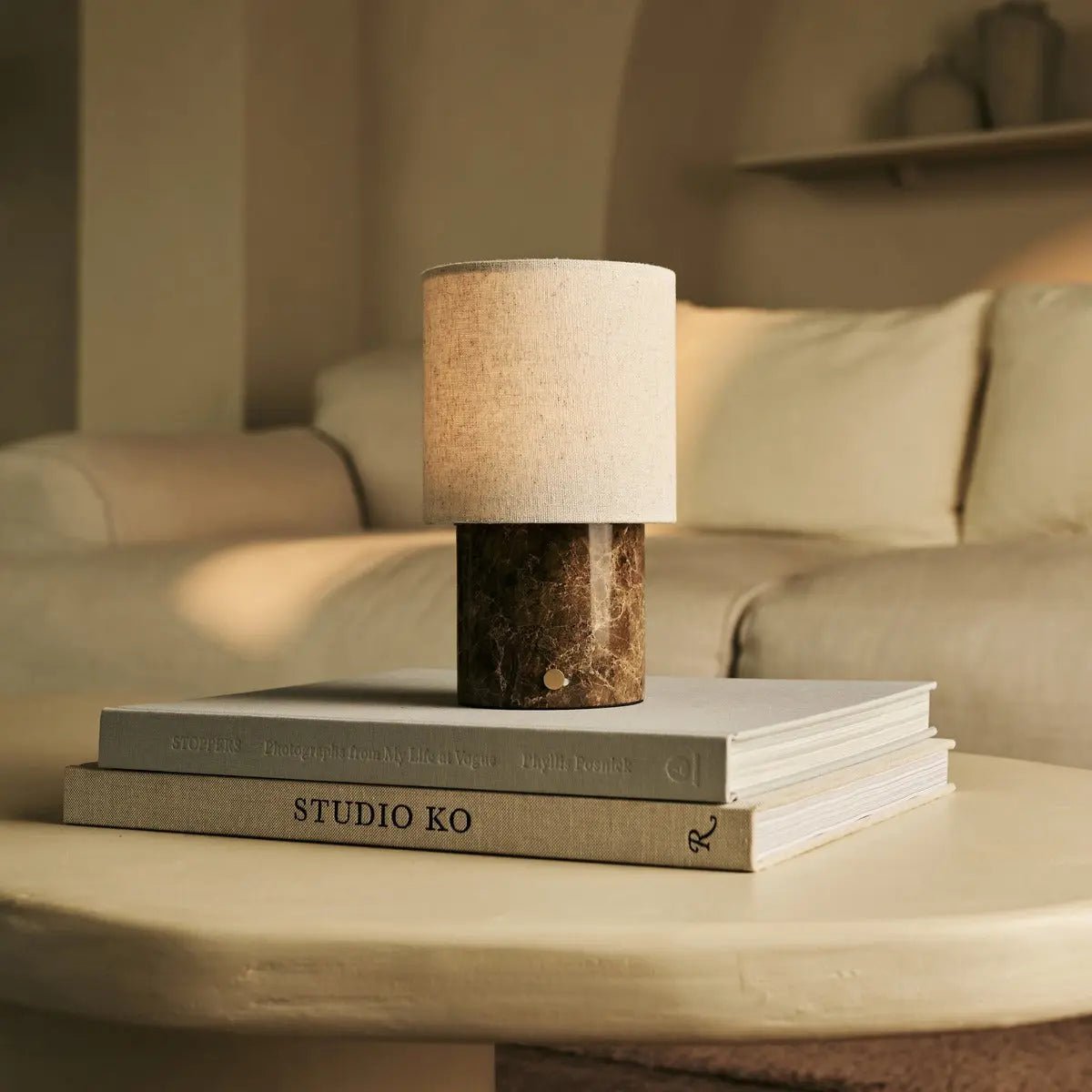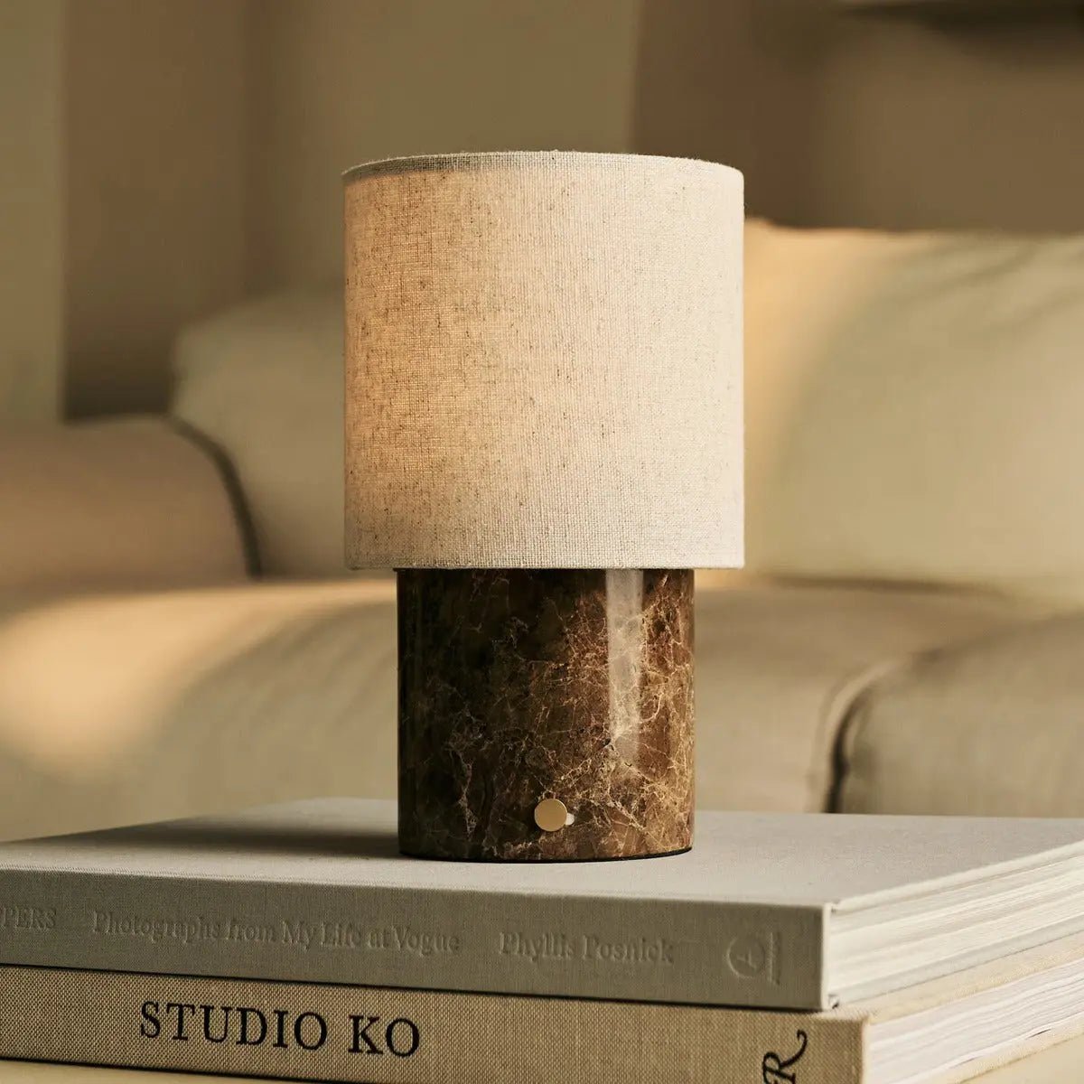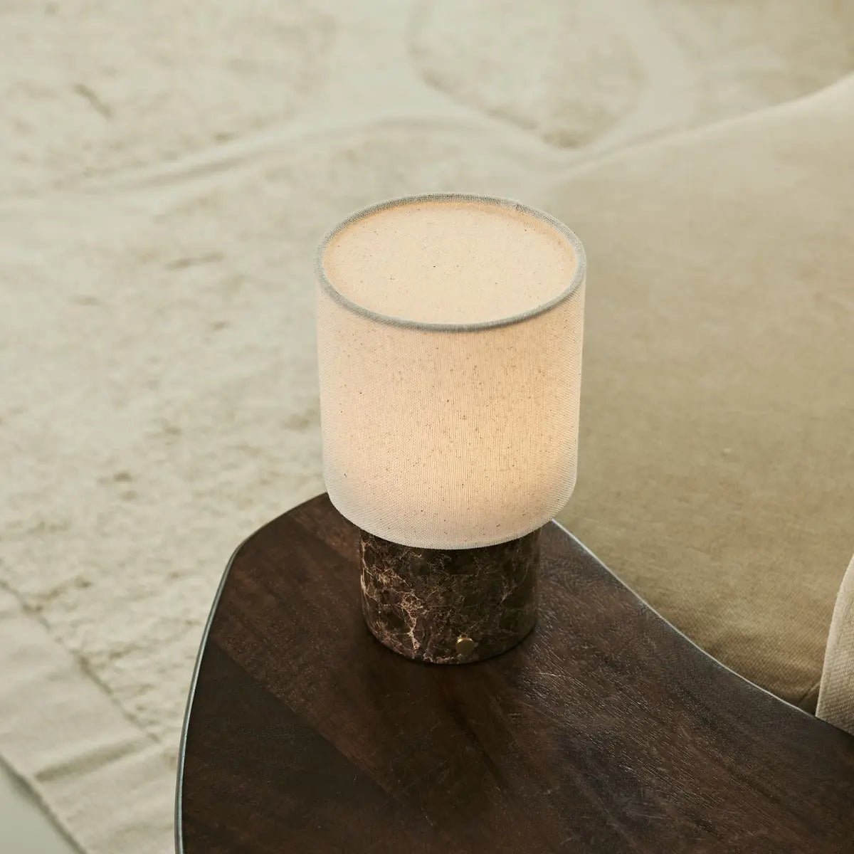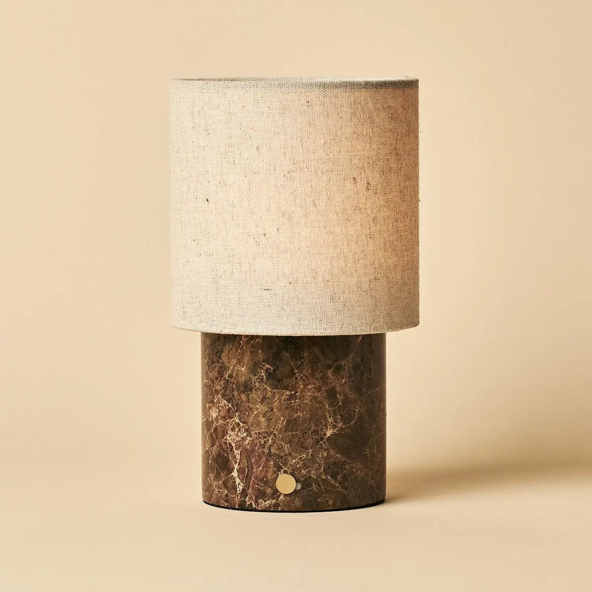 Onoda Brown / Emperador Dark – Marmeren oplaadbare tafellamp – met linnen verwisselbare lampenkap en oplaadbaar ontwerp