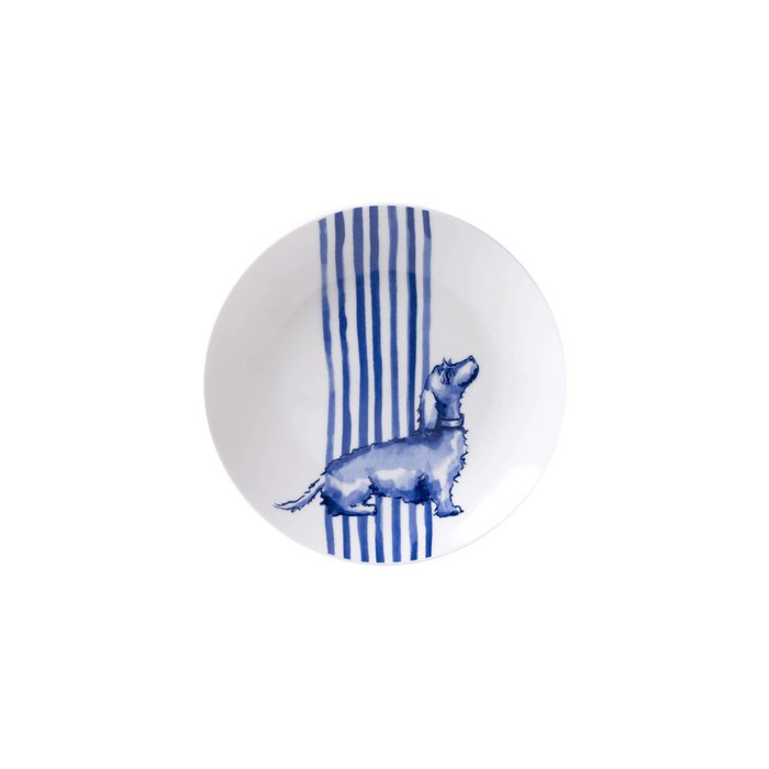 Bij het zien van dit schattige petit four bordje smelt je meteen. Het handige kleine bordje is onderdeel van de Sharing Moments collectie van Janny van der Heijden, die inmiddels uit de lijnen Tulp, Aapjes en nu ook Nhaan bestaat. Nhaan is de harige teckel van koningin van de keuken, Janny van der Heijden. Deze aandoenlijke diva op vier pootjes verovert in een rap tempo de harten van vele Nederlanders. Naast een eigen Instagram-account, covershoots voor magazines en tv-rolletjes in kookprogramma’s heeft dit vrolijke hondje nu ook haar eigen Delfts blauw servies waarop zijzelf de hoofdrol speelt. De meesterschilder van Heinen Delfts Blauw heeft dit karakteristieke hondje tot in detail nageschilderd en laat haar vrolijk spelen op borden, kommen en theekopjes. Het Nhaan servies sluit ook nog eens naadloos aan op de eerder uitgebrachte collecties van het Sharing Moments servies, waarop weelderige tulpen en ondeugende aapjes centraal staan. Zo is het midden van het bordje gedecoreerd met speelse strepen, die ook weer terug te zien zijn op de andere serviezen. Sharing Moments is een samenwerking tussen Janny van der Heijden en Heinen Delfts Blauw. Het servies is ontstaan vanuit een gedeelde liefde voor Delfts blauw aardewerk, design en bovenal ook functionaliteit. Zo zet je niet alleen een prachtig porseleinen servies op tafel, maar ook eentje die fijn in gebruik is en altijd goed van pas komt.