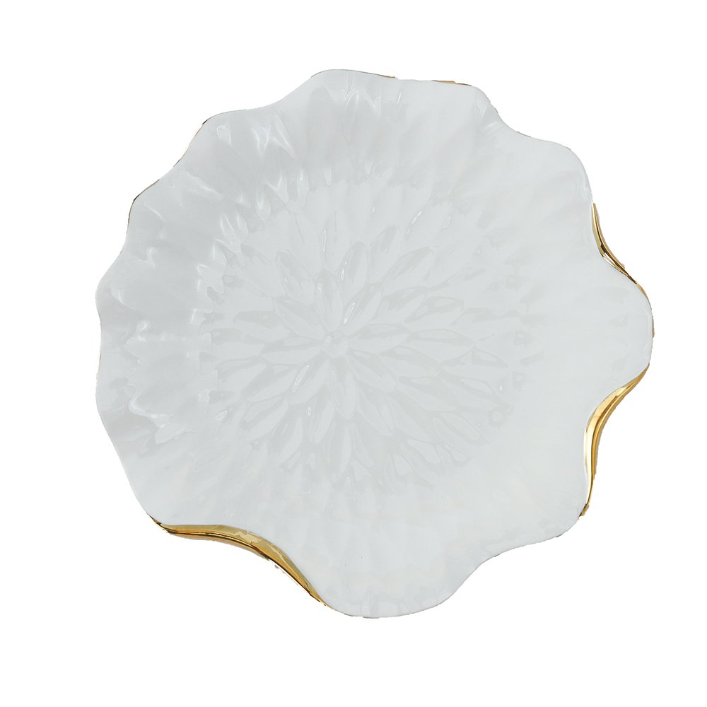 Platte plaat in wit porselein met gouden randen