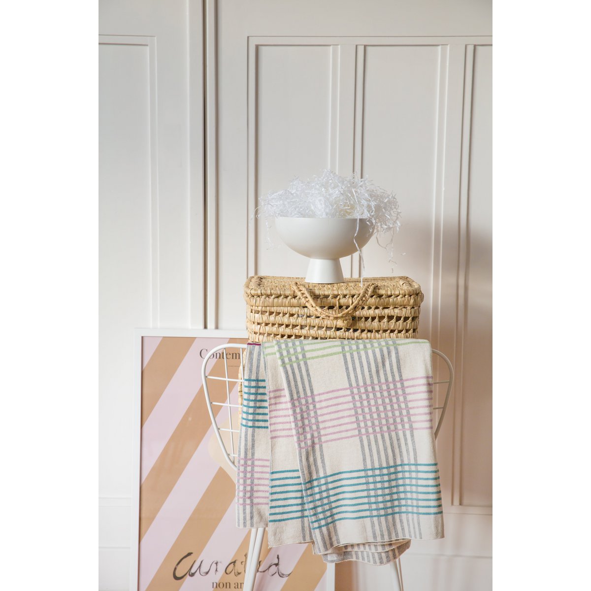Een jacquard gebreide deken in een superzachte geborstelde eco-tex katoenkwaliteit. Het ontwerp is omkeerbaar, met een verschillende voor- en achterkant. Deze stijlvolle katoenen plaid geeft elke bank of coach een funky twist. Het ontwerp is geïnspireerd op onze Scandinavische designtraditie. Zacht wassen op 30 graden130x170 cm