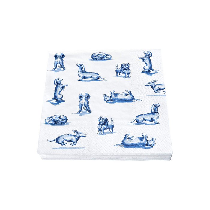 Lieve Nhaan is terug! Dit keer straalt deze harige teckel op een vrolijk stapeltje papieren servetten. Deze diva op vier pootjes is de trouwe partner in crime van tv-persoonlijkheid Janny van der Heijden. Als er wat lekkers te eten valt, dan is Nhaan er als de kippen bij en in de keuken van Janny blijft het natuurlijk niet alleen bij droge hondenbrokken. Deze culinair getrainde hond weet wel wat goed eten is. Daarom heeft het aandoenlijke hondje inmiddels ook haar eigen Delfts blauw servies. En geen enkel goed servies is compleet zonder een bijpassend stapeltje servetten. Dus maak je Nhaan collectie compleet met deze Delfts blauwe servetten, waarop Nhaan zich van al haar beste kanten laat zien. Daar wordt je gegarandeerd vrolijk van!