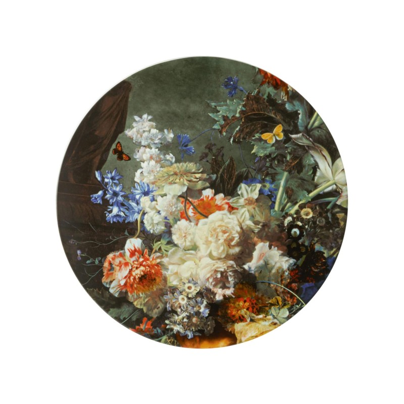 Een keramieken bord met een kleurrijke bloemstilleven met vlinders Het bord is 42 cm diagonaal en weegt 2000 gram