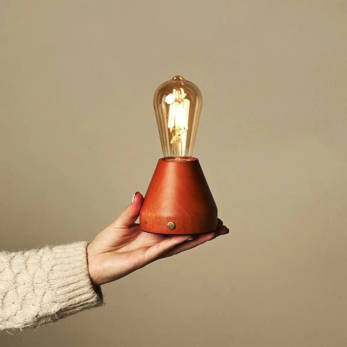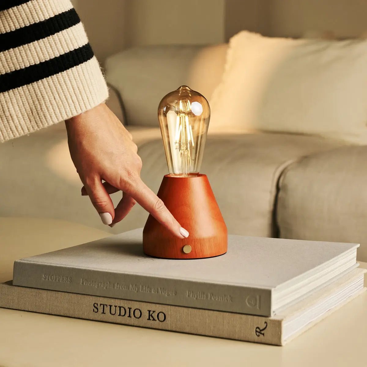 Zavi kastanje bruin oplaadbare LED-tafellamp-draadloos, dimbaar, 100-uur batterij stijlvol model: de draadloze led-tafellamp van Tavellio brengt een eerbetoon aan de klassieke gloeilamp en biedt moeiteloze sfeer zonder het probleem van koord. De ingebouwde batterij is snel op te laden via de meegeleverde USB-kabel en biedt tot 100 uur verlichting, dus u bent altijd verzekerd van voldoende verlichting. Gemakkelijk gebruik: de lamp is gemakkelijk te bedienen met slechts één eenvoudige aanraking. Hiermee kunt u de lamp gemakkelijk in- of uitschakelen. Dimbare functie: de lichtintensiteit van de lamp kan als gewenst worden aangepast met behulp van de touch-dim knop die de juiste ambiance van uw keuze zorgt. Het draagt bij aan een cirkelvormige houtindustrie omdat het alleen wordt gebruikt na de volledige levensduur van de boom. Het gebruik ervan bevordert duurzaam bosbeheer en helpt afval te verminderen. De lamp heeft een laag stroomverbruik. Tapplicabiliteit: de draadloze functionaliteit geeft u de vrijheid om de lamp overal te plaatsen, terwijl het opladen eenvoudig is via moderne technologie. Een veelzijdig en trendy item dat gemakkelijk te gebruiken is. Specificaties · · Afmetingen: 10 cm Ø, 25 cm hoog · Materiaal: rubberwood, glas · Batterij: 5000 mAh (10 tot 100 uur, afhankelijk van het gebruik van het gebruik) · LED-licht · Handgemaakt, antislip, draadloos en gemakkelijk dimmable · USB-claadbare, kabel inbegrepen